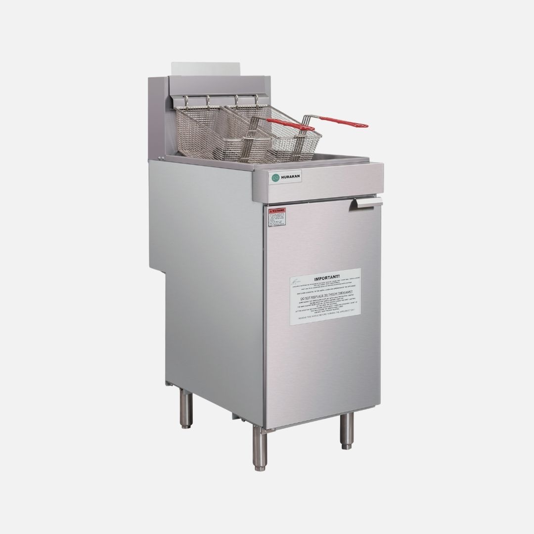 The Hurakan HKN-FXF50EA Gas Floor Fryer is an upgraded high-efficiency model designed for professional kitchens requiring reliable, high-volume frying performance.